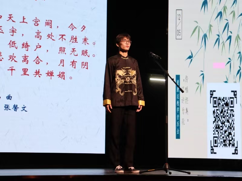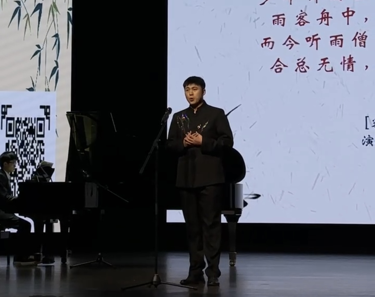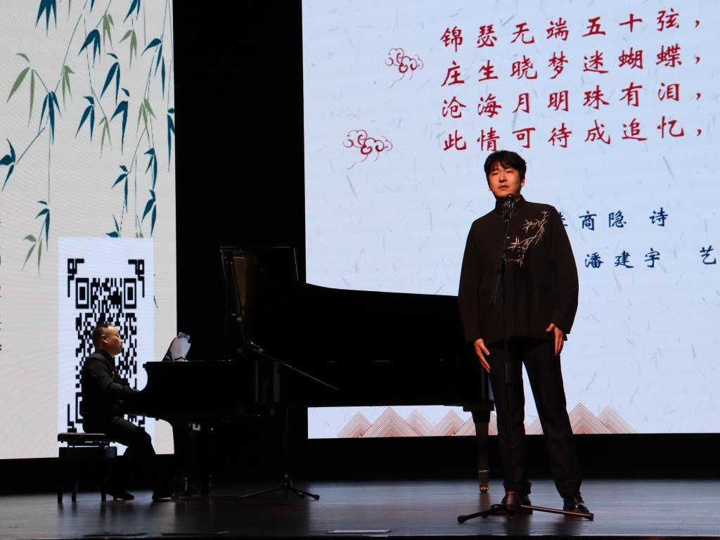 赵一澔带来的男中音独唱《月满西楼》,以醇厚而富有表现力的声音,表现出诗人触景生情的离愁别绪。