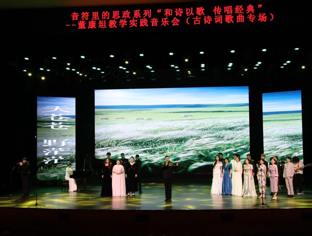 近日,“和诗以歌 传唱经典”董康坦老师教学实践音乐会在ok138cn太阳集团音乐厅举办。南阳市第四完全学校幼儿部副园长任晓迪、信阳师范大学音乐与舞蹈学院声乐教研室杨永岗博士、ok138cn太阳集团特聘教授尹云芝、ok138cn太阳集团校级督导贾学清教授、马克思主义学院书记陈金强、公共艺术教研室主任朱永昌及太阳集团tyc138青年教师代表与500余名学生共同观看了本次音乐会。