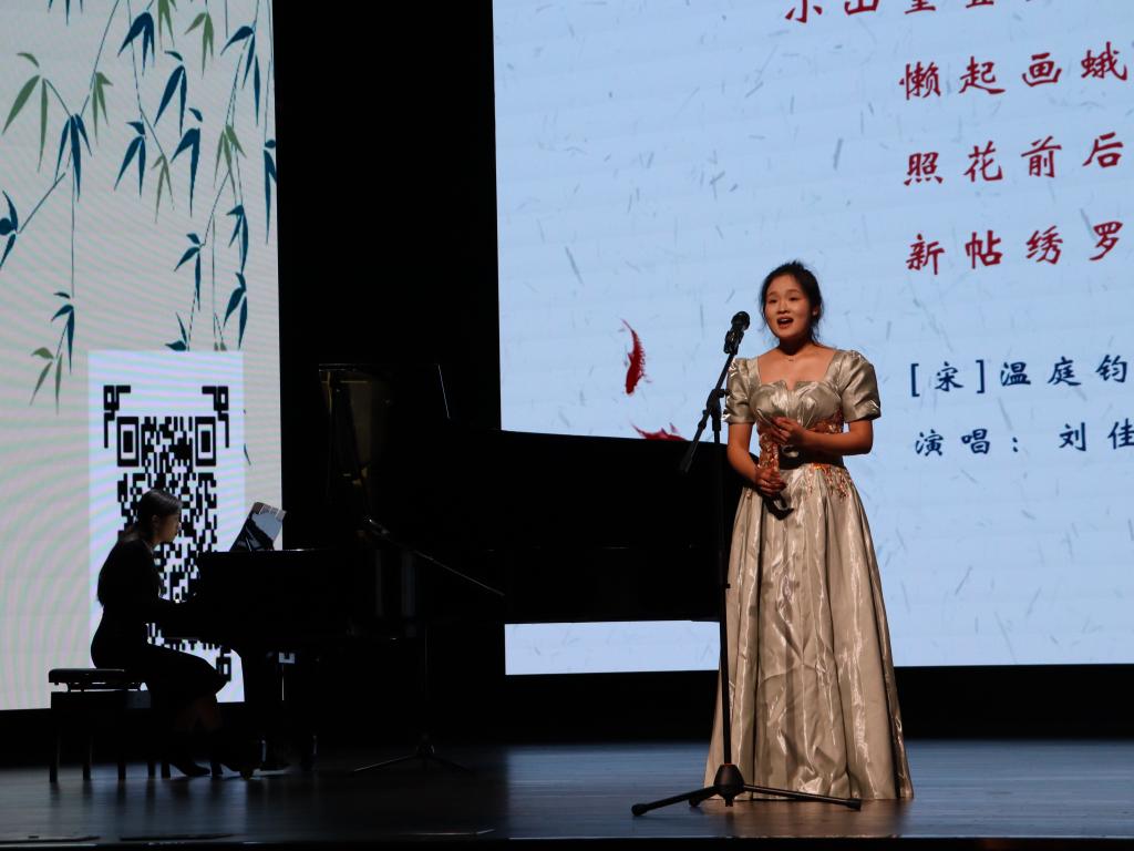 刘佳的女高音独唱《菩萨蛮·小山重叠金明灭》,用细腻的嗓音和优美的表演展现了对歌曲内涵的理解。