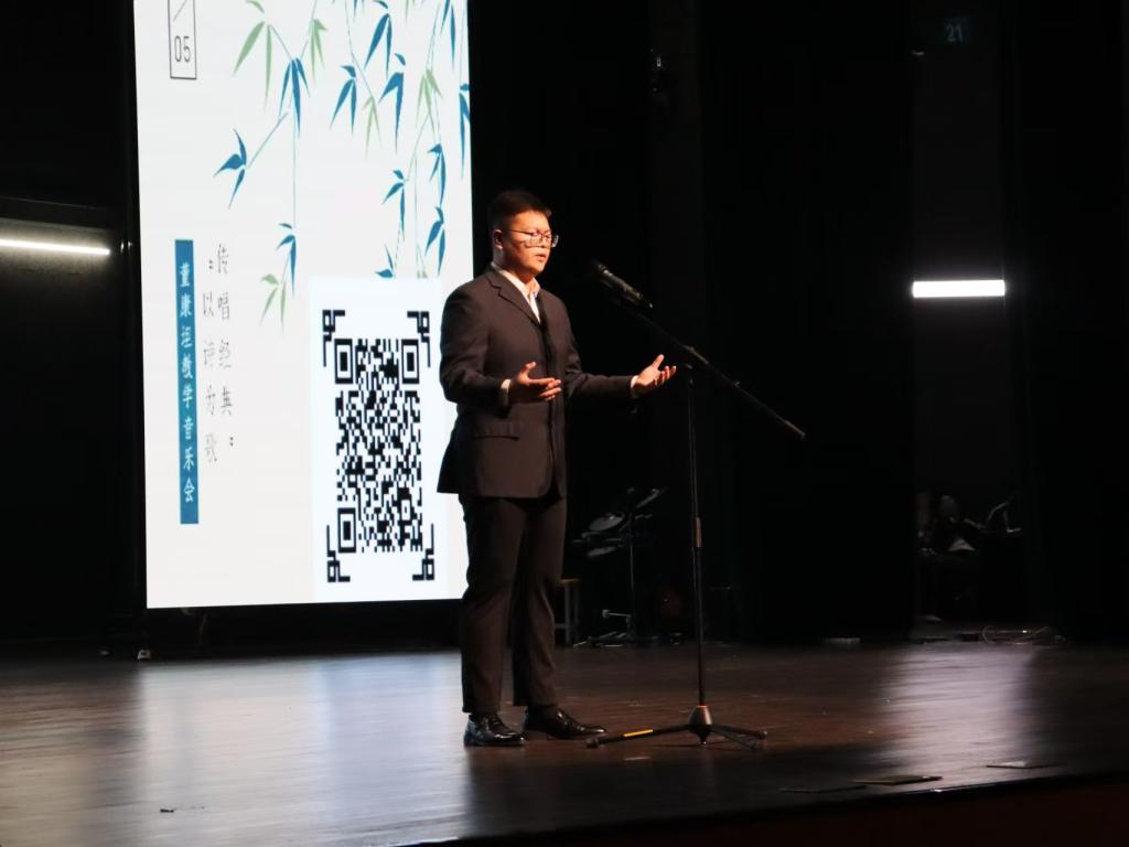 最后,晚会以董康坦老师演唱的《敕勒歌》收尾,董老师以其时而低沉时而高亢的嗓音和富有层次感的表现力,配合优美的钢琴声、悠扬的笛声、动感的电声乐队伴奏,将现场气氛拉向高潮,整场晚会的诗词意蕴让人意犹未尽。