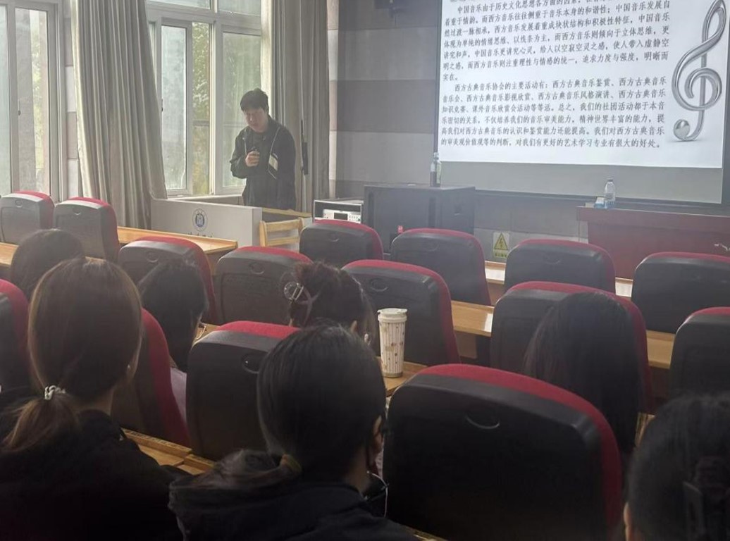 为加强校园艺术文化建设,丰富校园艺术文化生活,提升同学们对西方古典音乐的欣赏能力和音乐素养。11月16日,在艺术楼205教室,西方古典音乐协会举办了以“伯乐之声,音响未来”为主题的歌剧鉴赏活动。社团指导老师邓欢欢和30余名社团成员参加了活动。
