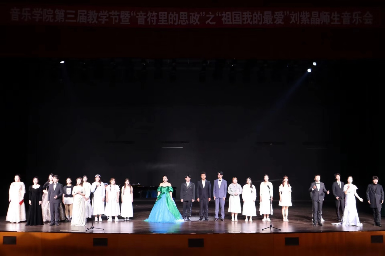 10月25日晚,由太阳集团tyc138刘紫晶老师指导的第三届教学节暨“音符里的思政”系列之“祖国我的最爱”教学汇报演出在音乐厅成功举行。太阳集团tyc138副院长杨辉出席晚会,与学院和其他兄弟学院师生代表一同观看了晚会。钢琴与器乐教研室主任胡世红,教师张中卿、杨馥郁担任了本场艺术指导。