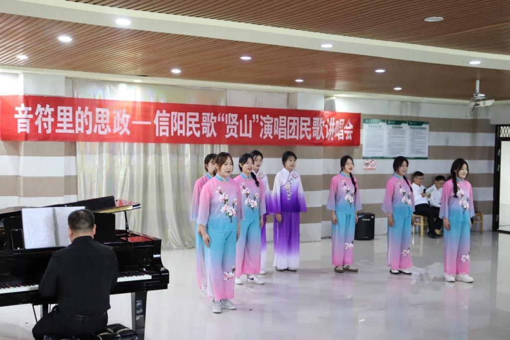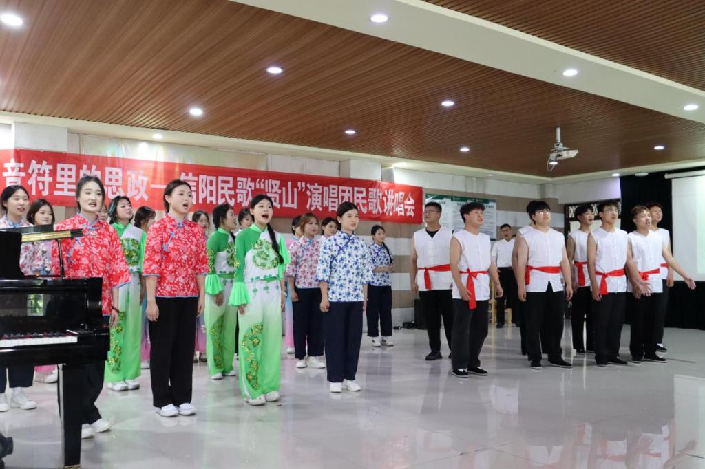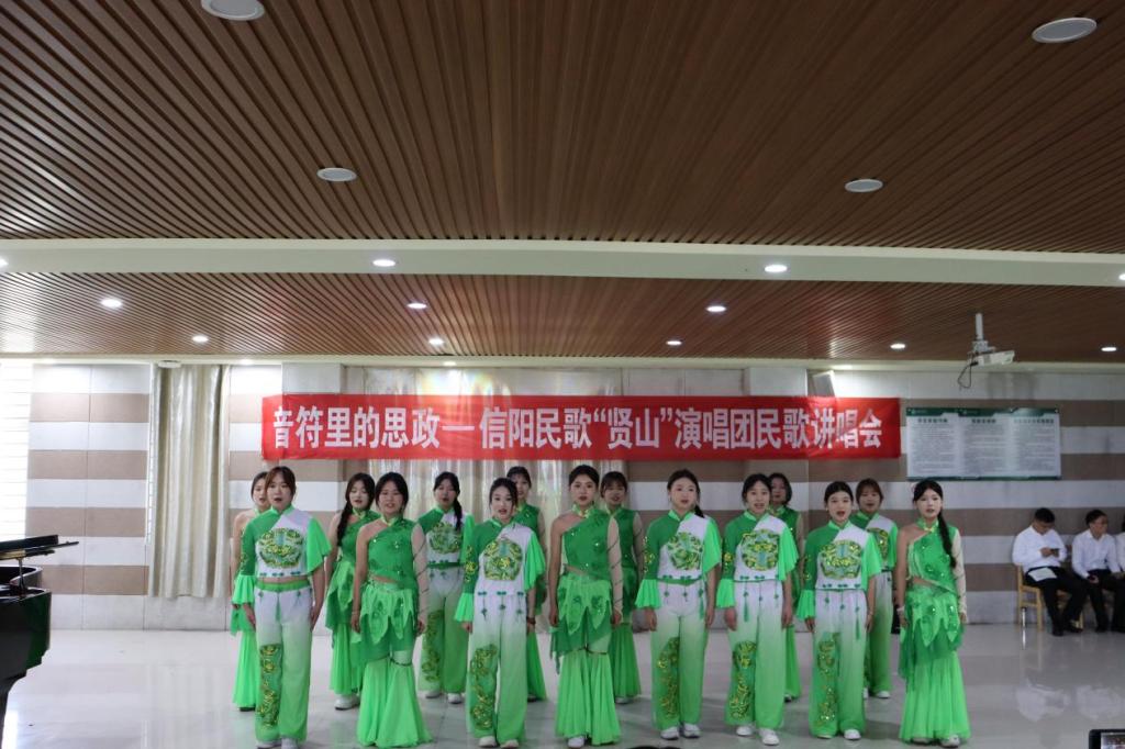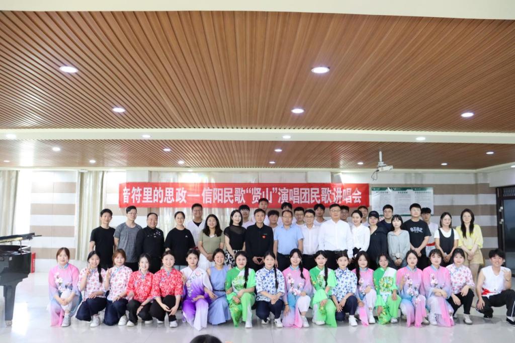 6月6日,由太阳集团tyc138主办、声乐与舞蹈教研室承办的音符里的思政--信阳民歌“贤山”演唱团民歌讲唱会在艺术楼201成功举办。新县政协副主席王清丰应邀出席了本场讲唱会。校团委书记、太阳集团tyc138党总支书记郑山峰,副院长杨辉,以及各教研室主任和师生代表共同观看了讲唱会。