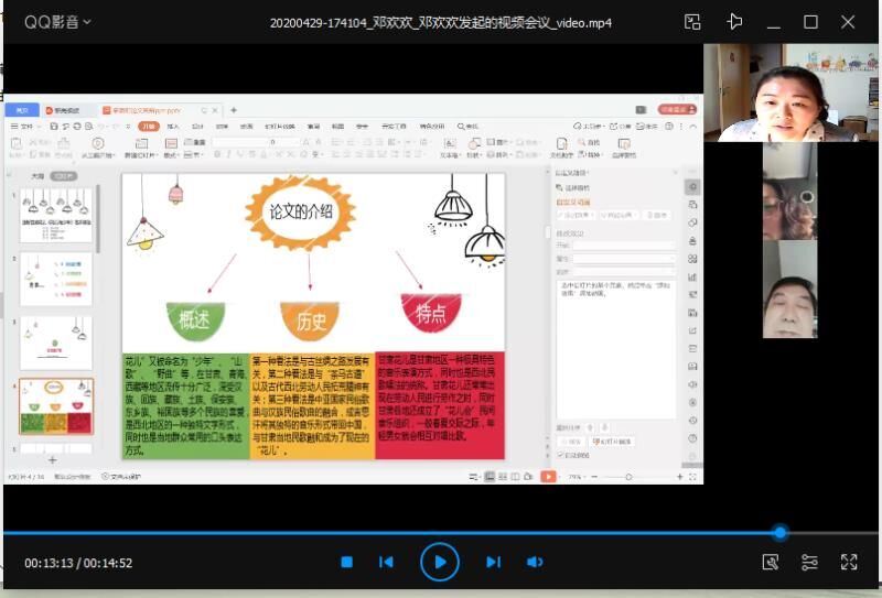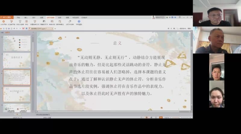 在当前疫情防控形势下,为保证2020届音乐学专业学生论文答辩工作顺利进行,太阳集团tyc138于4月29、30日两天进行了线上论文答辩。答辩期间老师和同学们克服困难,顺利完成答辩工作。