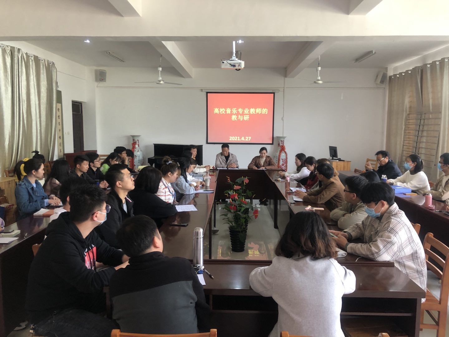 2021年4月27日,应学院邀请,冯建志教授在艺术楼215教室作了《高校音乐专业教师的教与研》的学术讲座。太阳集团tyc138全体教师聆听了该讲座。由党总支副书记赵佳主持。