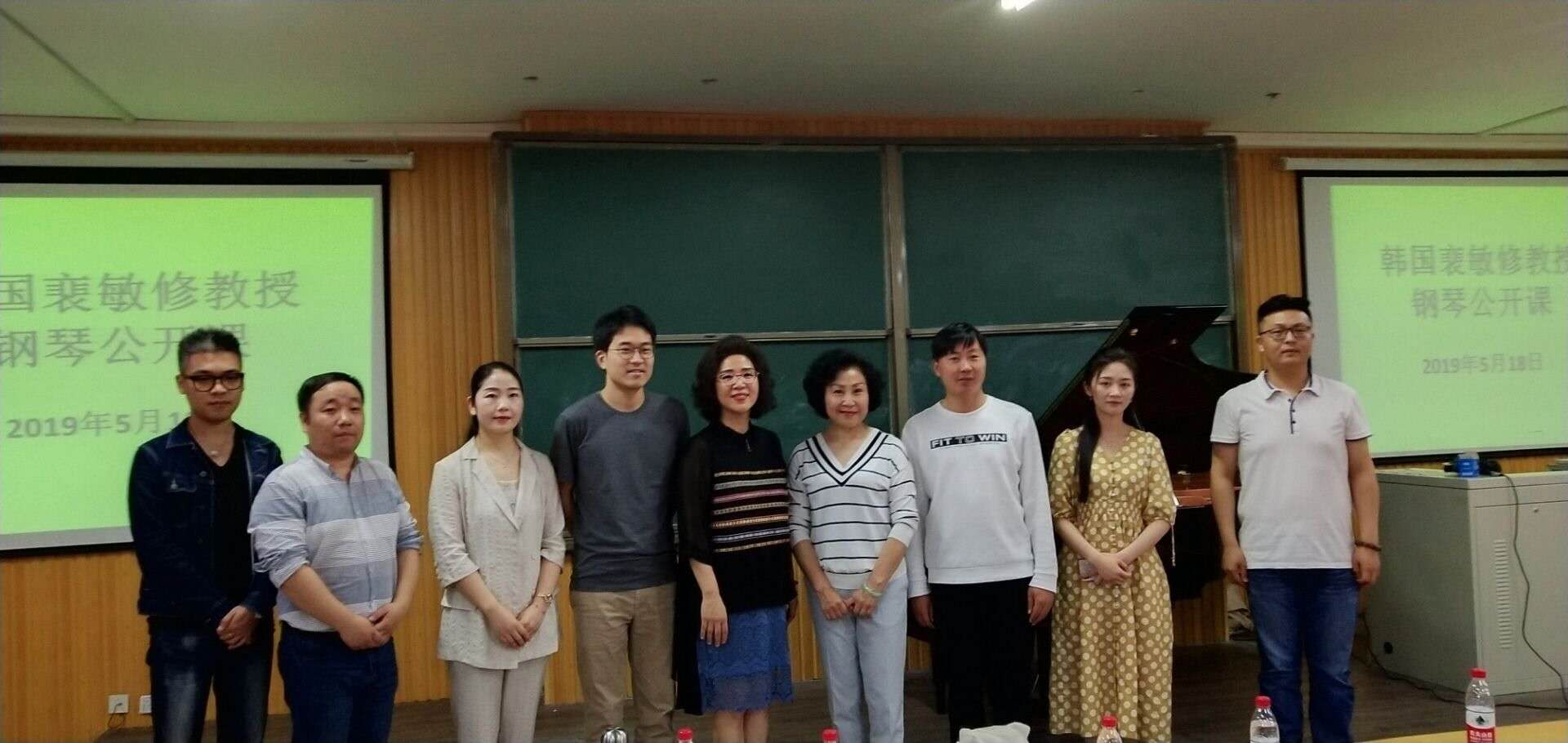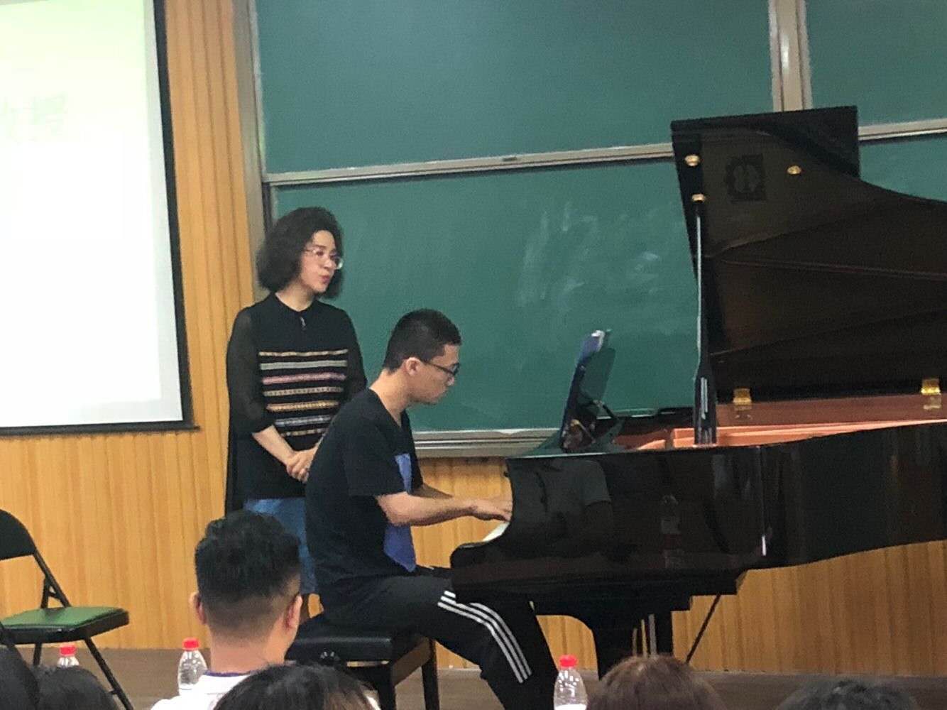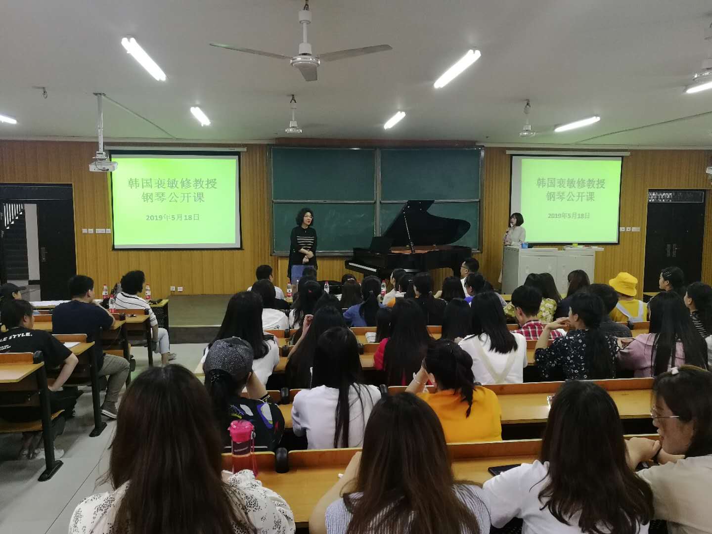 5月18日上午:应太阳集团tyc138邀请,裵敏修教授钢琴公开课在艺术楼101教室举行。太阳集团tyc138院长吴柏林、党总支副书记陈金强、教学秘书杨辉及200余名师生参加了活动。