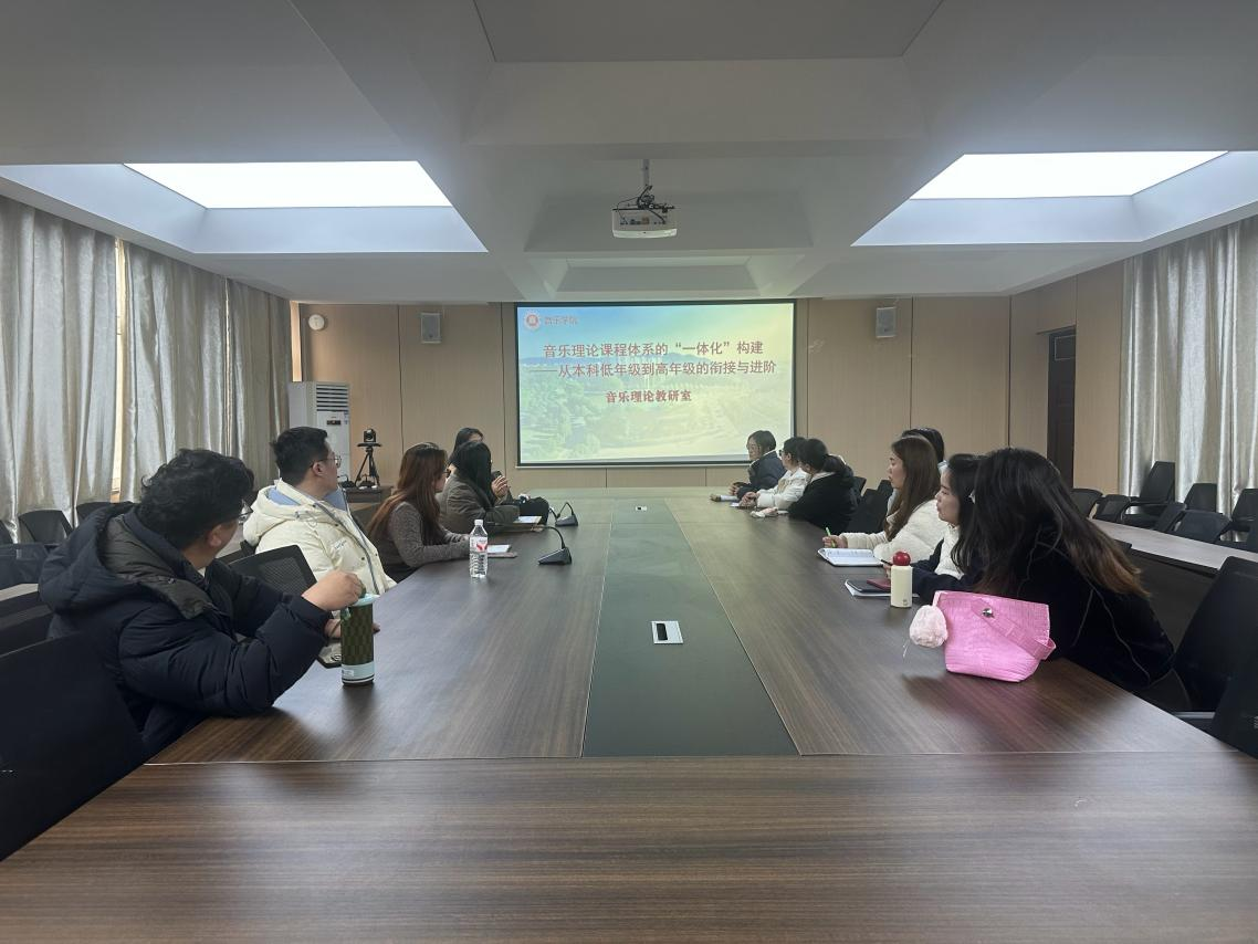 本次教研活动为优化音乐专业理论课程结构,打通低年级基础与高年级提升之间的壁垒,推动乐理、视唱练耳、和声学、曲式与作品分析、中外音乐史等课程的纵向衔接、横向贯通和分层递进。郑亚楠、王瀚兴和刘晨慧三位老师分别从不同角度进行了分享。
