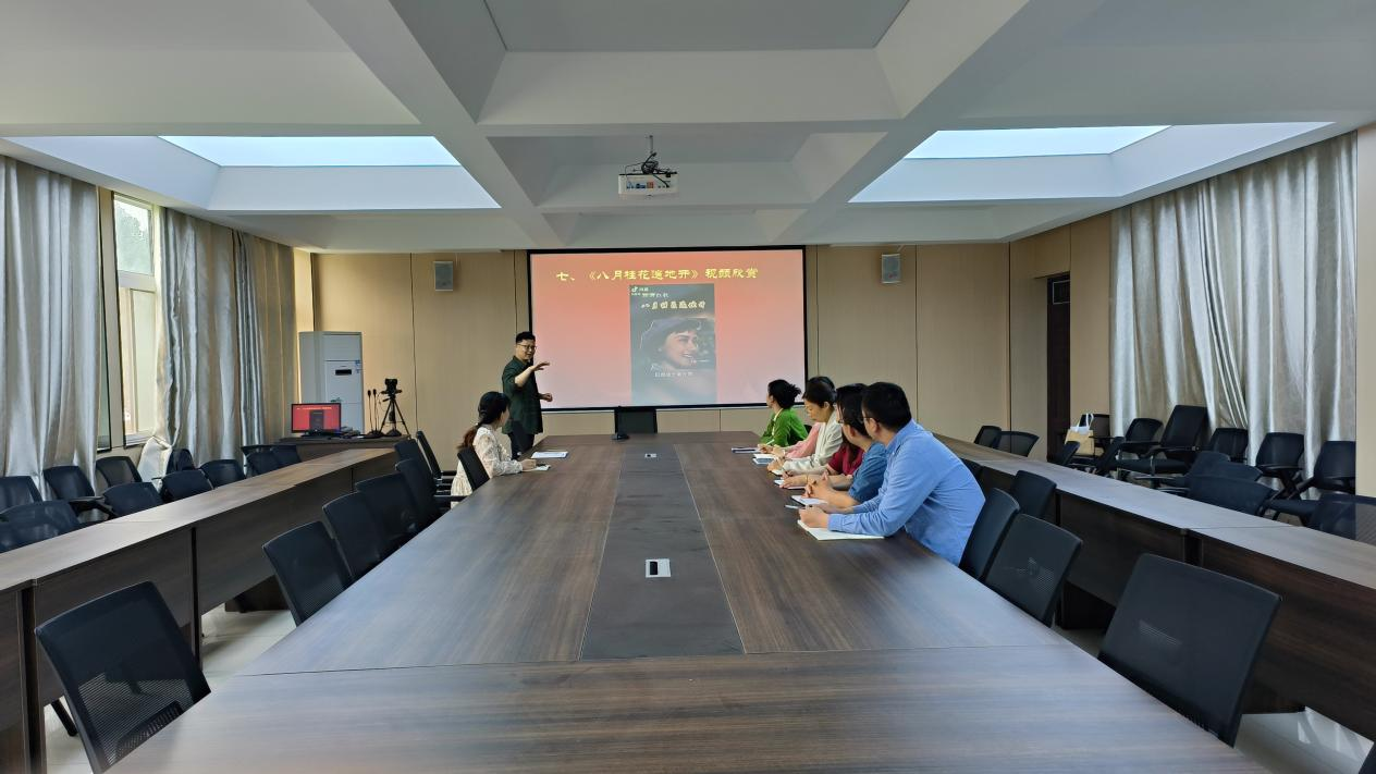 他以大别山革命历史民歌《八月桂花遍地开》为例,讲解了大别山革命历史民歌中蕴含的“大别山精神”,并让大家欣赏、学唱了这首民歌;最后,大家对“新时代‘大别山精神’的传承、传播思考”进行了研讨。最后,他强调,“大别山精神”具有重要历史意义和时代价值,作为新时代的教师党员,我们应该通过不同方式继续学习、传播和弘扬“大别山精神”,让“大别山精神”一代代传承下去。