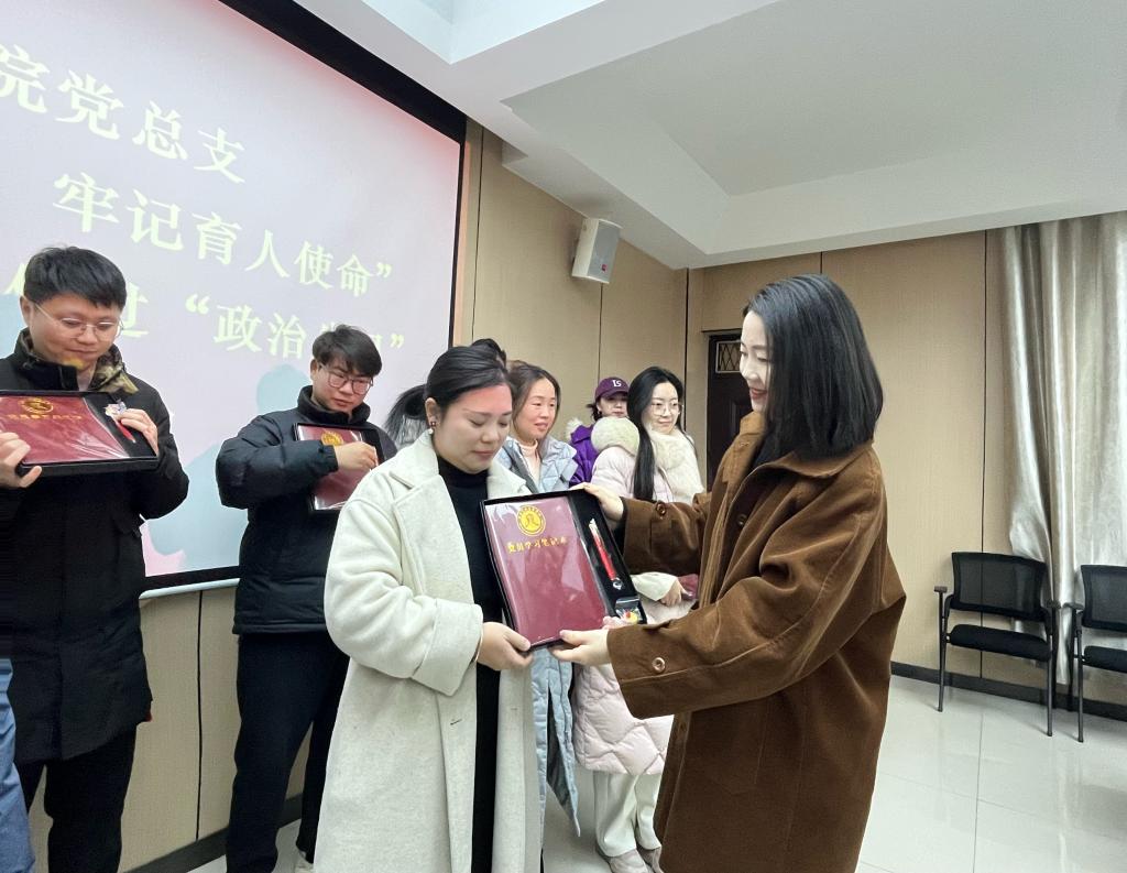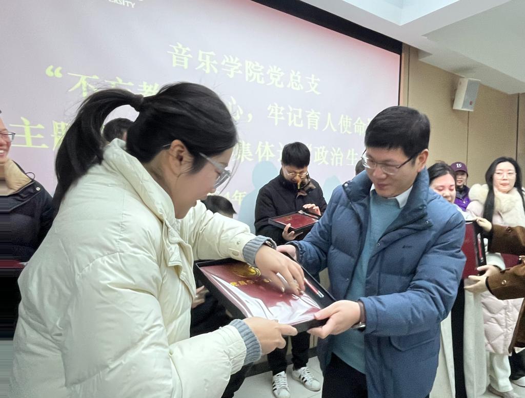 全体党员集体重温入党誓词。通过重温入党誓词、让党员同志在思想上再一次经受“洗礼”,坚守入党初心,强化党性意识,激发奋斗热情。学院党总支为过“政治生日”的党员送上“贺卡”,并赠送纪念品。参加党员教师纷纷表示这是自己的第一个“政治生日”,深感荣幸和自豪,感谢党组织的培养和关怀,并表态作为教师党员,不忘初心,践行入党誓词。要给学生做好表率,要把对音乐教育事业的热爱、对教育的初心扎根在学生心中。