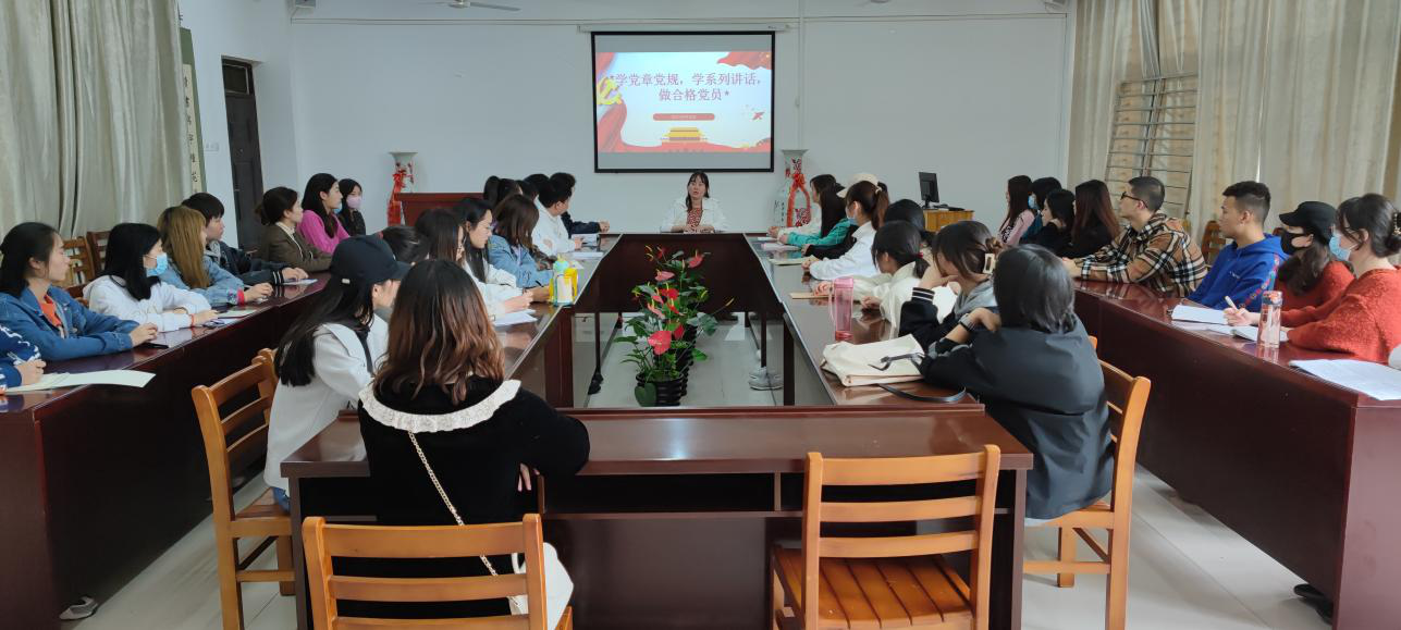 4月20日中午,太阳集团tyc138学生党支部在艺术楼215会议室举行了以“学党章党规,学系列讲话,做合格党员”为主题的党史学习教育专题报告会暨第十期党员发展对象主题党课,由学生党支部书记梁晓梅主讲,太阳集团tyc138全体学生党员及第十期党员发展对象参加了此次报告会。