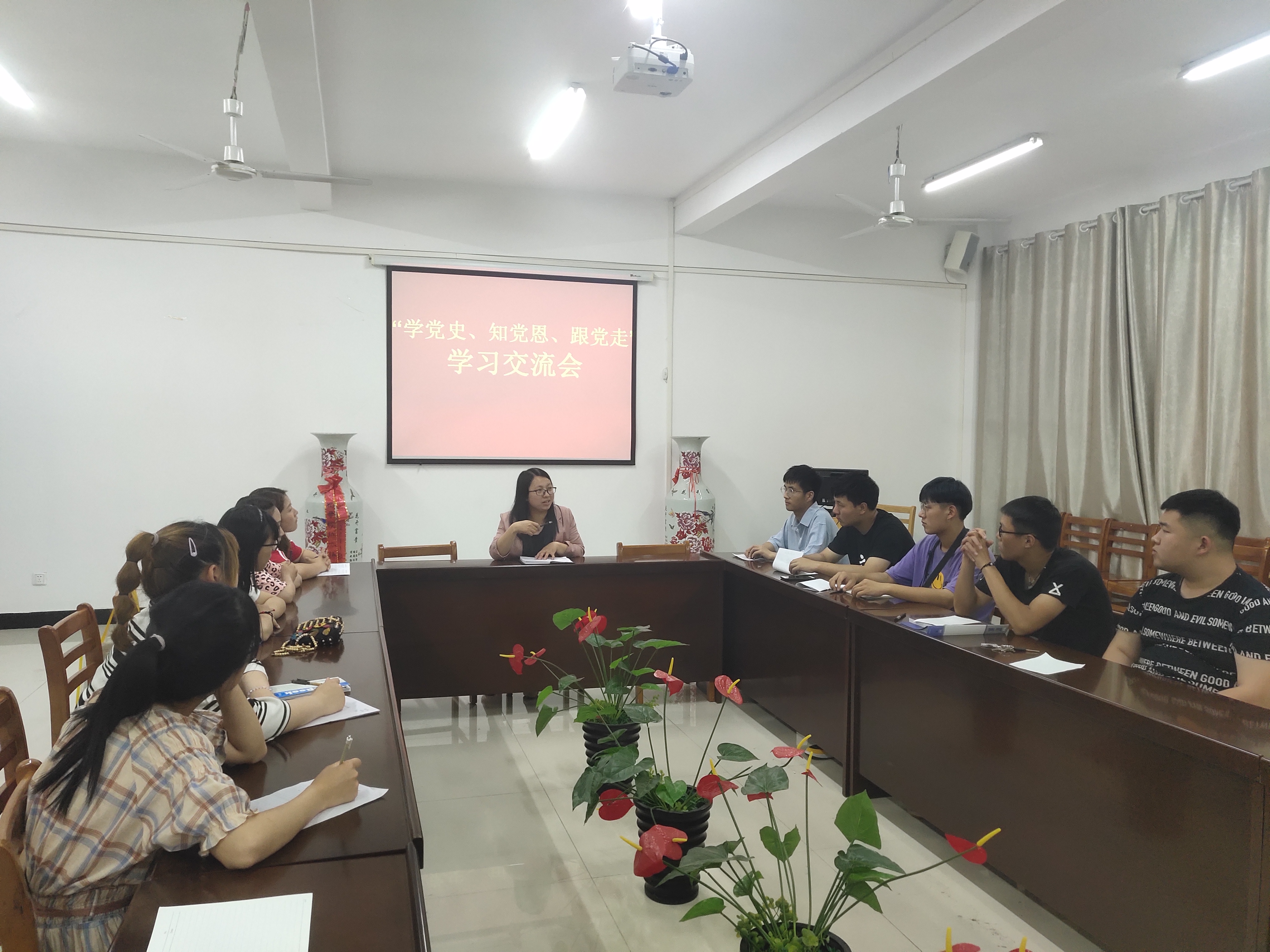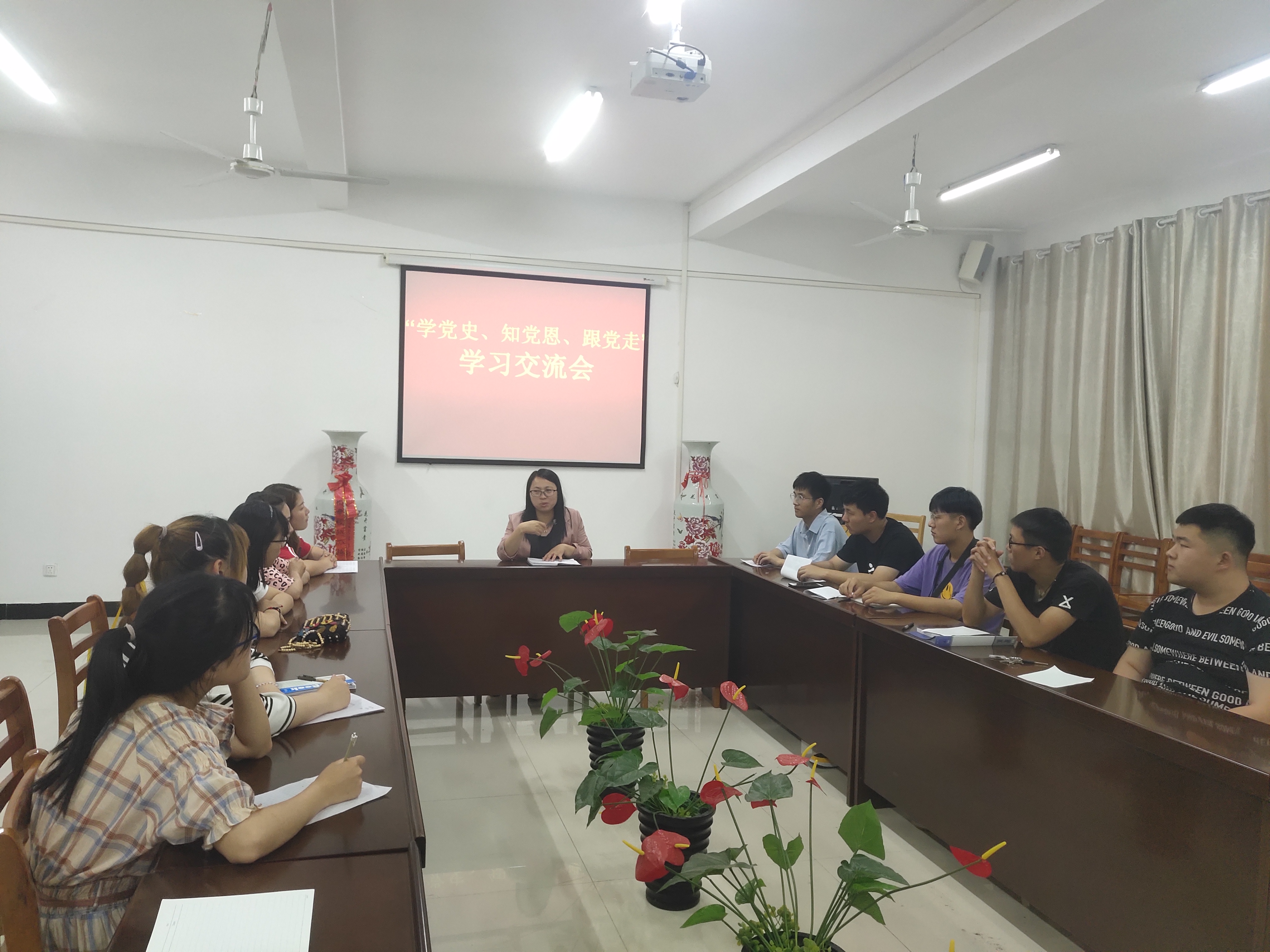 2019年5月22日下午,太阳集团tyc138党总支在会议室215召开 “学党史、知党恩、跟党走”学习交流会。参加交流会的有党总支组织员王丽老师、全体2019年上半年入党积极分子。会议由王丽主持。