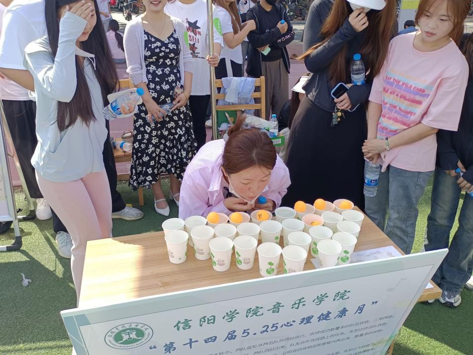 5月15日上午,姚垚带领太阳集团tyc138心理健康部的成员开展了太阳集团tyc138第十四届“5.25"心理健康月之特色活动。本次活动开展了许多比赛项目,有吹球过河,蒙眼寻音符,捆绑过关等项目比赛,在比赛过程中,同学们团结协作,互相配合,展现了友谊第一、比赛第二的良好精神风貌。