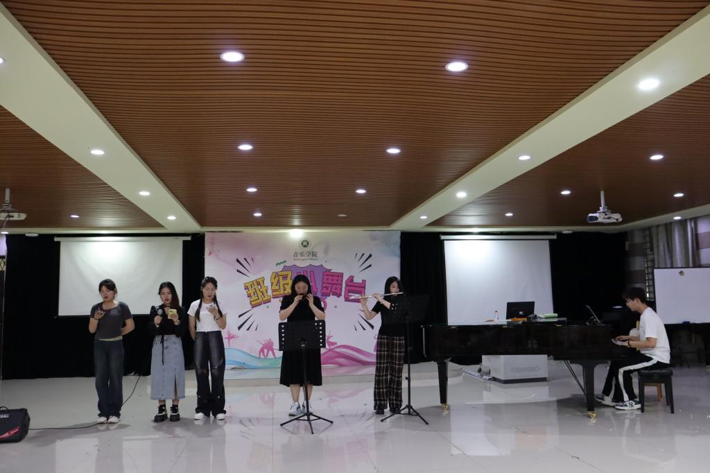 为进一步丰富校园文化生活,营造良好的班级文化氛围,增强同学们的心理健康,提升舞台专业实践能力,让学生更健康快乐,更充实,阳光,展现大学生的艺术特长。2021级音乐学4班和23级音乐升1班于5月24日19:00在艺术楼201教室举办了“班级小舞台”活动。