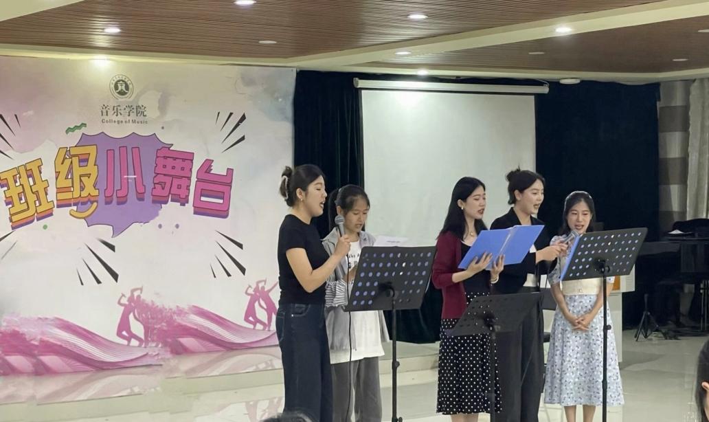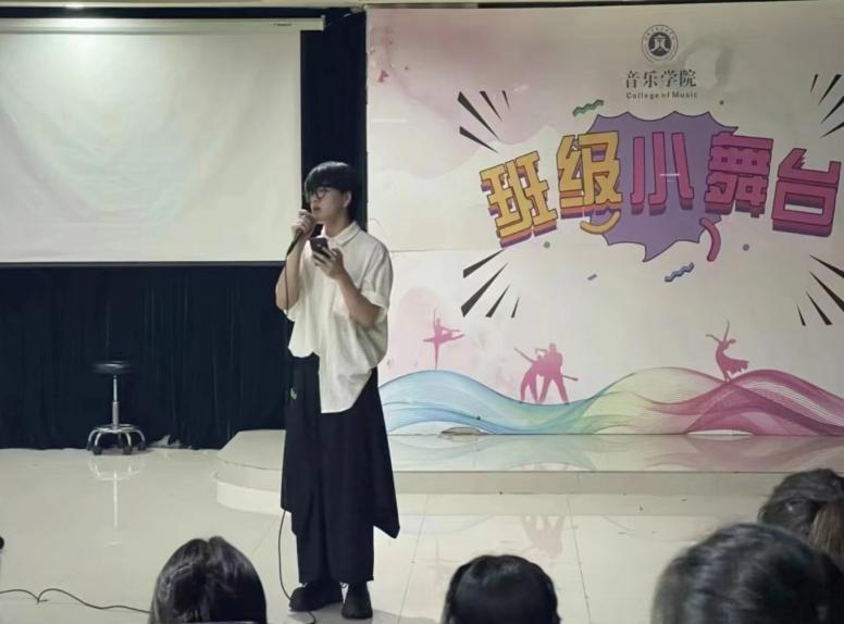 为加强学风建设,营造良好的班级氛围,增强同学们之间的凝聚力与向心力,强化同学们专业舞台表演实践能力与锻炼心理素质,5月26日晚,2021级音乐学1班的全体同学于我校艺术楼201举办了一场主题为“音乐从心开始”的班级小舞台晚会活动。