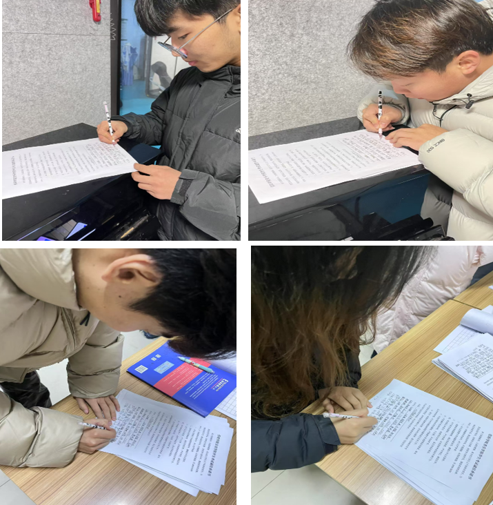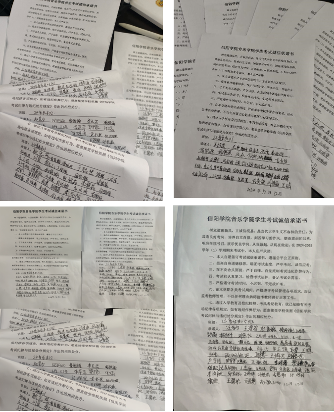 同学们认真的阅读了承诺书上的内容,并郑重的完成签名,同学们表示,一定要严格遵守考场纪律,坚决杜绝考试作弊违纪行为的发生。