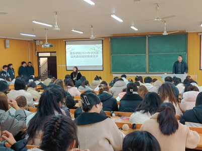 为了促进学院学风建设,树立学风建设先进典型,引领全院师生以先进为榜样,营造奋发向上的学风氛围,12月9日下午,太阳集团tyc1382024年学风建设先进集体宣讲会在艺术楼101教室开展,我院党总支书记郝昊、学工秘书李平、全体辅导员和学生代表参加了此次大会。