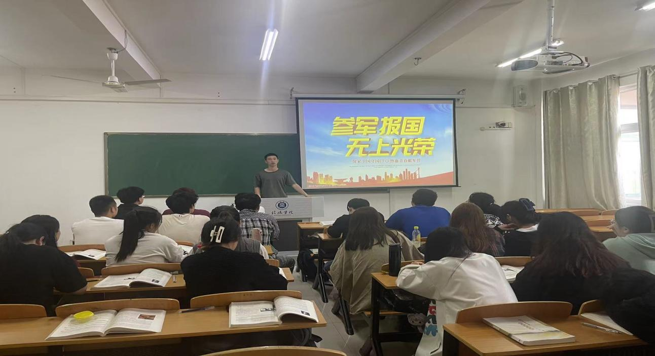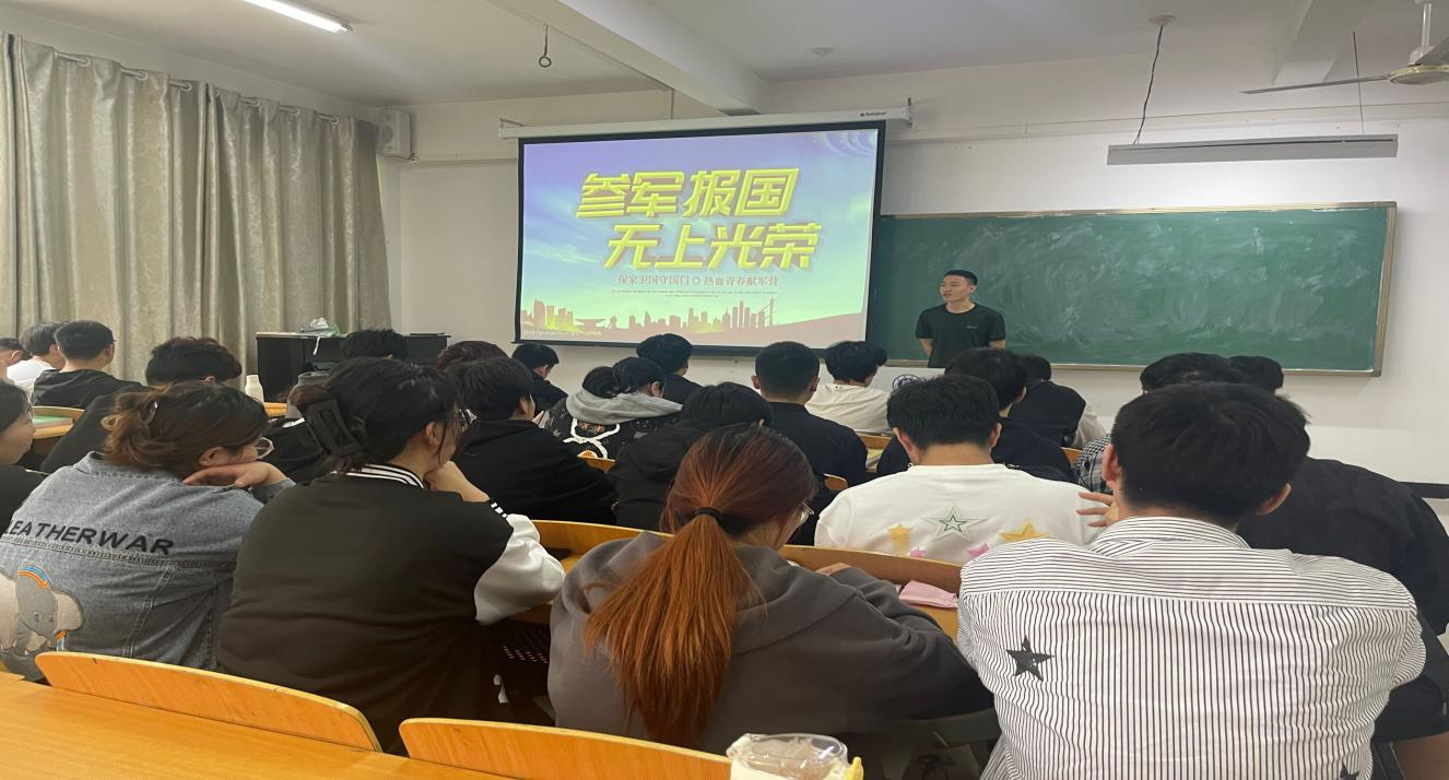 太阳集团tyc138退伍在校生王志强向新生们分享了自己的入伍经历。谈起自己应征入伍的动机。随后,他又向学弟学妹们分享了入伍这两年的成长经历。他强调,参军入伍的时光有很多有意义的时刻,自己也从中收益颇多,并鼓励学弟学妹们踊跃参军,为盛世中华的繁荣昌盛贡献出自己的力量。