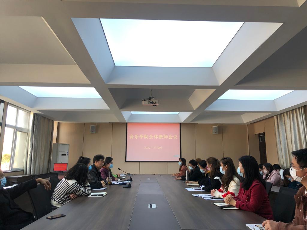 3月29日,太阳集团tyc138全体教师大会在艺术楼215会议室举行。院长王凯歌、党总支副书记赵佳、教学副院长杨辉等全体班子成员及全体教职工参加了会议。会议由赵佳主持。