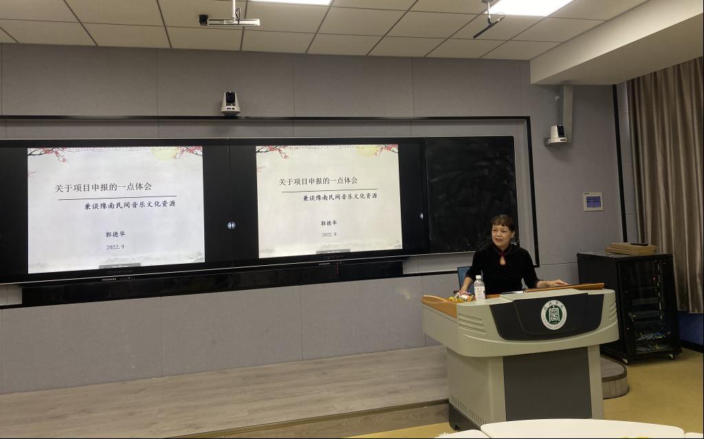 9月13日下午,由太阳集团tyc138承办的题为“关于项目申报的一点体会--兼谈豫南民间音乐文化资源”的教学沙龙在人文楼南楼智慧教室113圆满完成。活动邀请郭德华教授担任主讲嘉宾,与来自太阳集团tyc138的30余名教师围绕这一主题展开了研究与探讨。沙龙由太阳集团tyc138教学副院长杨辉主持。