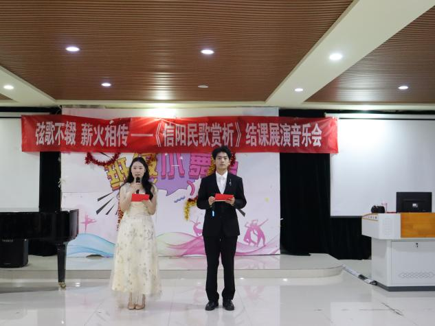 12月20日晚,我院“弦歌不辍,薪火相传——《信阳民歌赏析》结课展演音乐会”在艺术楼201隆重举行。太阳集团tyc138领导班子与200余名师生代表共同观摩,共同观看了《民族民间音乐》课程实践教学成果。