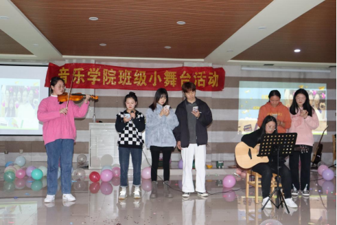 为加强学风建设营造良好的班级文化氛围,增强同学们的集体荣誉感,锻炼同学们的心理素质,提升舞台专业实践能力。于11月24日晚上,2019级音乐学本科五班的在艺术楼201教室开展“班级小舞台”活动。