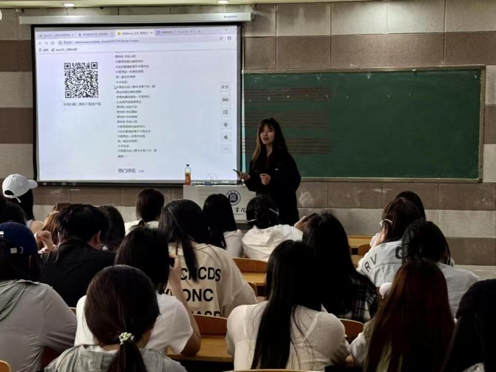 考虑到非专业学生的兴趣和接受能力,学院精心设计了“音乐入门工作坊”,内容涵盖基础乐理、节奏训练、流行歌曲演唱等。本次教学的歌曲是《大城小爱》,熟悉的旋律瞬间点燃现场气氛,通过歌曲原版和综艺现场版,引导学生感受歌曲的轻松氛围和情感基调。