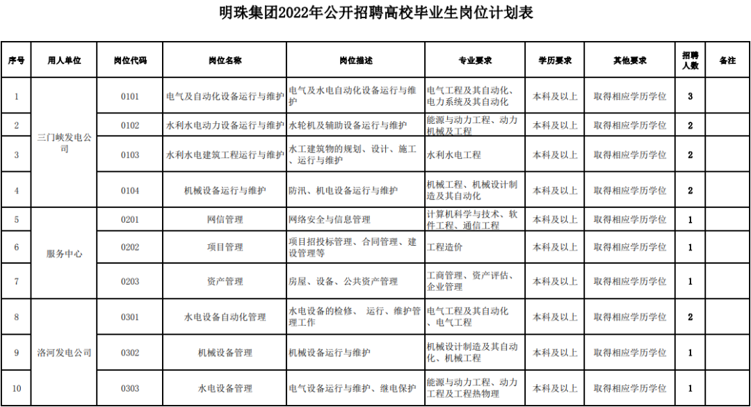 招聘岗位及要求详见《明珠集团2022年公开招聘高校毕业生岗位计划表》(附件1)。