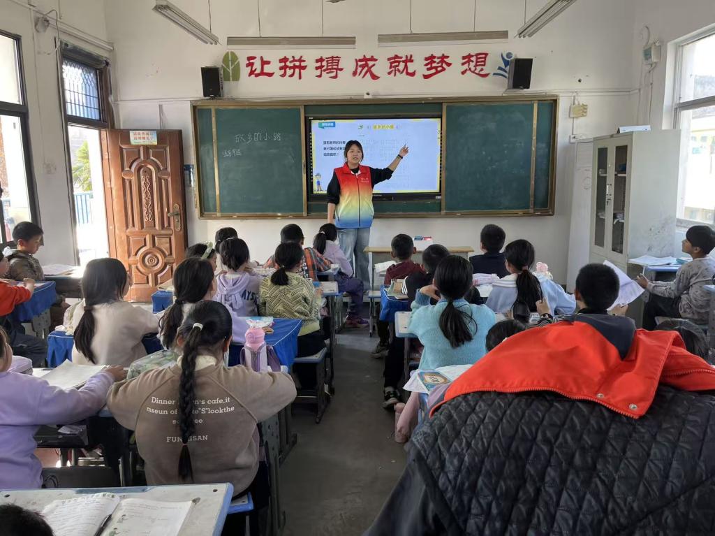 本次授课对象为二、四、六三个年级。二年级的授课内容为《虫儿飞》,这首传统的民间歌谣简单轻快的旋律,让孩子们感受传统儿歌的美妙旋律。四年级学习的《故乡的小路》,通过优美的节奏,让孩子们加深家乡情怀。五年级的授课内容为《灯火里的中国》,通过钢琴一句一句地教孩子们唱歌,传递积极向上的信息,让孩子们加深爱国情怀。