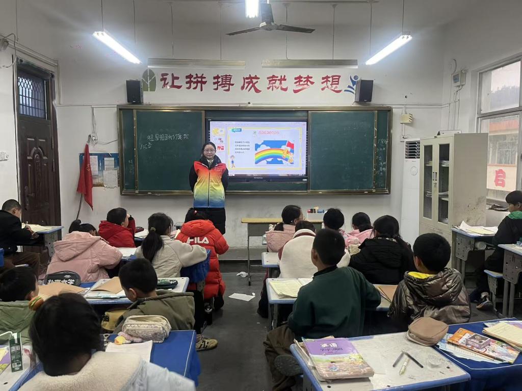 本次授课对象为二、四、六三个年级。二年级的授课内容为《左手右手》,通过老师的讲解与演唱让孩子们学习这首耳熟能详的儿歌。四年级学习的《祖国祖国我们爱你》,通过学习这首红歌让孩子们树立起浓厚的爱国情怀。六年级的授课内容为《凤阳花鼓》,这首安徽民歌通过老师的讲解,让孩子们认识到民歌的含义感受到民歌的魅力,让孩子们喜欢上中国传统民间音乐。