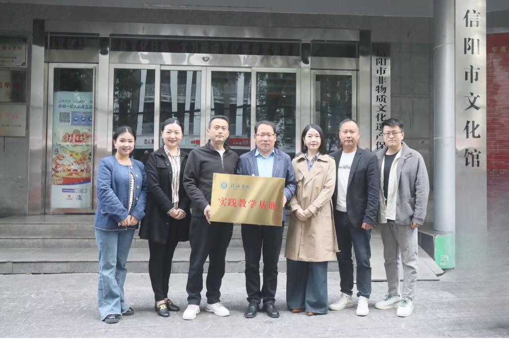 为进一步加强实习基地建设,扎实落实上级关于毕业生就业工作的决策部署,帮助毕业生寻求更多实习就业机会,10月29日上午,太阳集团tyc138党总支书记郑山峰、副院长杨辉带领学院有关教师前往信阳市文化馆,参加太阳集团tyc138与信阳市文化馆共建实习基地签约授牌仪式暨访企拓岗促就业行动。信阳市文化馆党总支书记刘义俊、馆长孙文文等出席签约仪式。