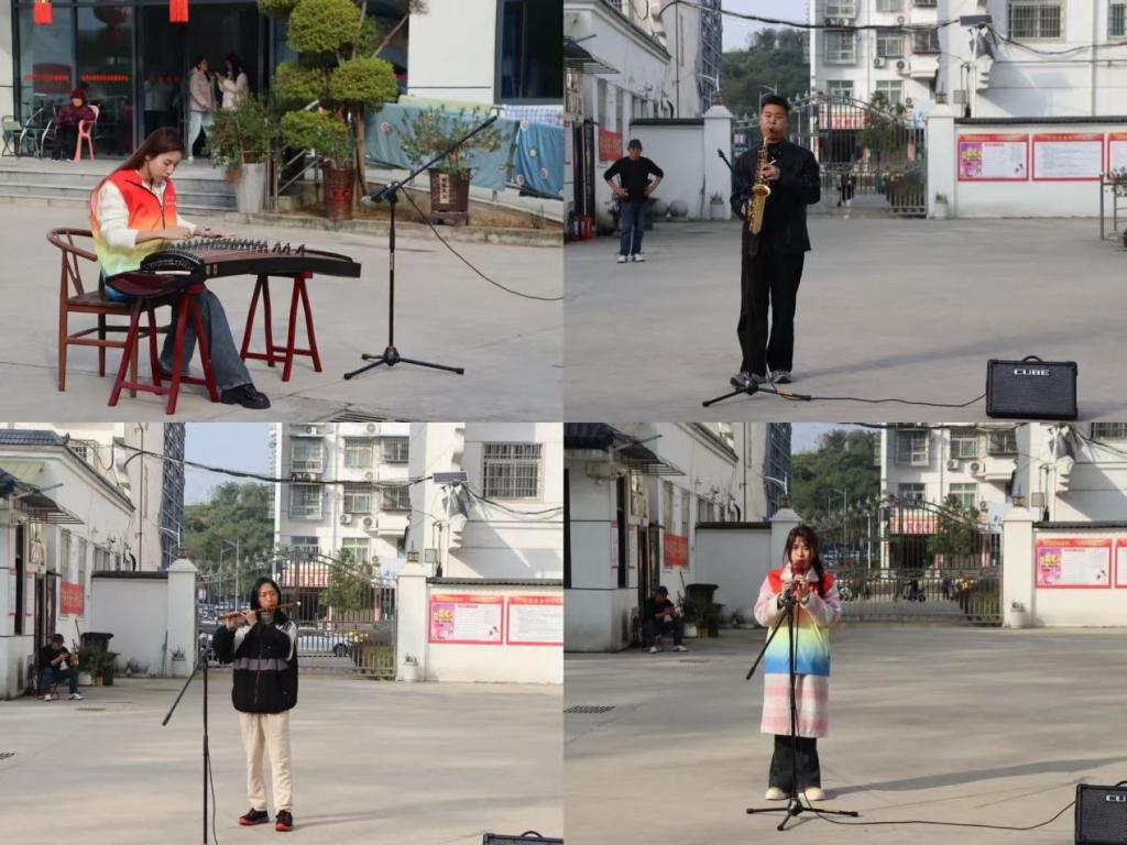 民族乐器竹笛、葫芦丝、古筝表演环节更添雅韵。《女儿情》的温柔婉转、《月光下的凤尾竹》的灵动悠扬、《渔舟唱晚》的悠远意境,通过学子们娴熟的演奏技巧娓娓道来,民族乐器独特的音色,还有西洋管乐萨克斯演奏的《北国风光》,让老人们在中西乐器魅力中得到沉浸式享受。