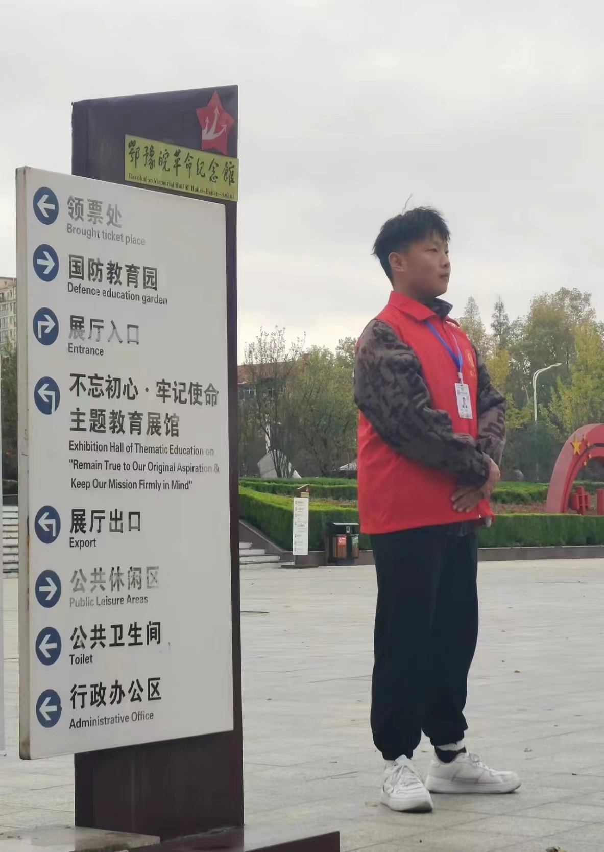 在志愿服务中,同学们各司其职。在入口指引大家停车,认真回答每一个参观鄂豫皖革命纪念馆的参观人员的疑问;在一楼和二楼每个区域都分布着志愿者,能够在最大限度上使参观人员得到帮助以及更好的去了解和认识所展览的内容。