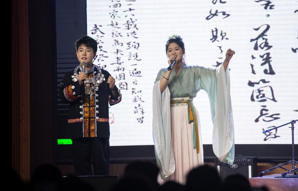 深受同学们喜爱的长安街237号带来的《爱人错过》《不再犹豫》《嘿 姑娘》拉开了晚会序幕。黄丽萍、王靖凯两位同学合唱的《武家坡》,郭兵带来的萨克斯演奏的《天路》,王一璇和高飞扬两位同学合唱的《河流》,顾星怡和王岩两位同学合唱的《不该》,张倩和石露月两位同学带来的舞蹈表演《危险派对》,程若琰和王一璇两位同学合唱《七里香》等精彩节目,给大家带来了一次次光影交错、热火朝天的视听盛宴。吴达演唱的《最后一页》,将晚会气氛推向高潮,最后在邵远琪演唱的《喜欢你》中,晚会落下序幕。
