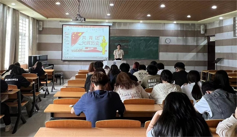 为深入学习习近平新时代中国特色社会主义思想,进一步加强我院基层团组织建设。5月31日中午,在艺术楼202,太阳集团tyc138团总支开展“共青团光辉历史-争做合格团员”团课教育活动,各年级学生代表共计50多名同学参加了活动。本次团课由团总支副书记徐甜甜主讲。