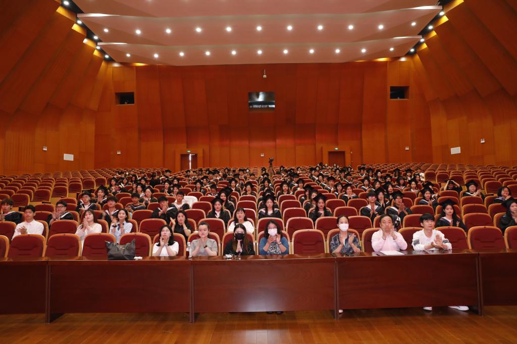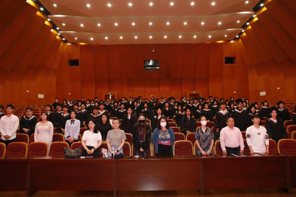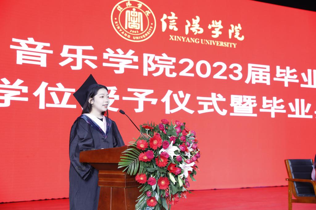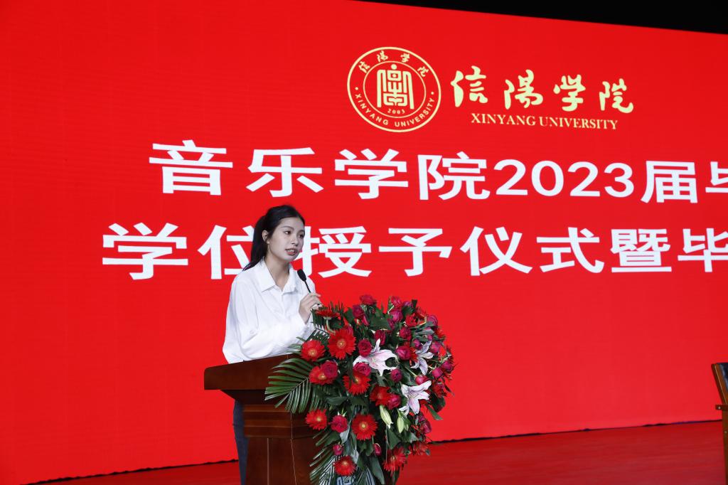 会上,2023届毕业生代表王优发言代表毕业生发言,感恩母校的栽培、师长的悉心教导和同窗的陪伴,并送上对全体领导老师、外国语学院的学子及母校祝福。在校生代表徐甜甜在发言中回忆了与学长学姐共同经历的生活和学习,温情的希望那些永不褪色的回忆,能够继续温暖前行的路。教师代表胡世红在发言中希望同学们无论走到哪里都要牢记“求真创新,勤学笃行”的校训,希望经过文化艺术熏陶过的同学们,有“坐看云起时”的气度;学会在平凡的生活中找寻人生的良多趣味;学会和自己的情绪安然相处;也会做好如何应对社会的磨练,生活的考验,能够拥有一个开心有趣,精神百倍的人生。
