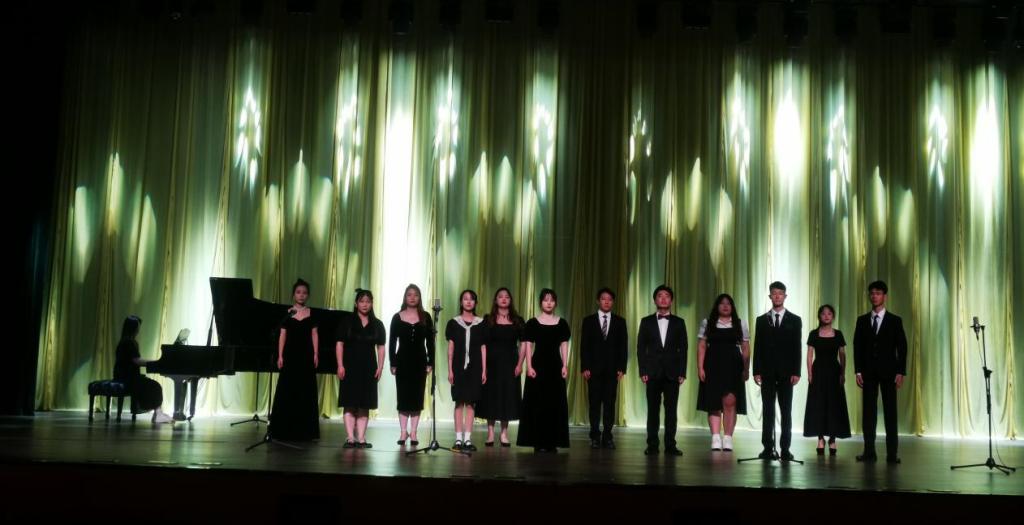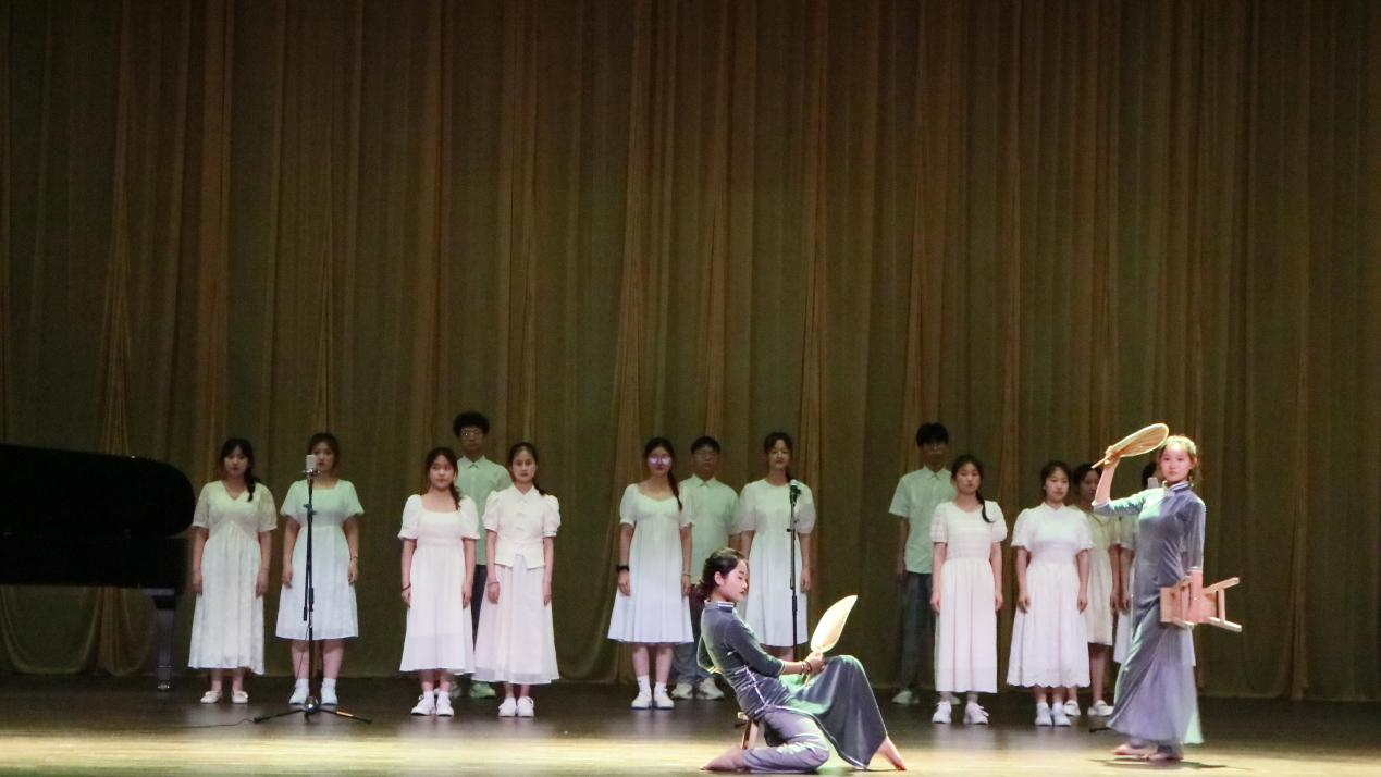 随后是《茉莉花》《八月桂花遍地开》《在太行山上》《我和我的祖国》《凤阳歌》等地方民歌、歌剧选段等作品,节目精彩纷呈,这些歌曲激起现场观众们浓浓的爱国情怀,同时也很好地增强了学生的民族自信与文化自信。尤其是歌曲《青玉案·元夕》,旋律明朗清新,音乐韵味十足,迎来观众阵阵掌声。
