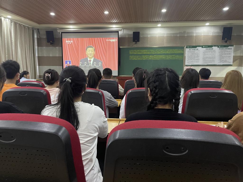 首先,她从党的二十大报告中28个关键词为切入点,为同学们梳理了党的百年奋斗征程,围绕党的二十大主题和主要成果,详细讲解了党过去五年的工作和新时代十年的伟大变革、开辟马克思主义中国化时代化新境界的历史责任、以中国式现代化全面推进中华民族伟大复兴的使命任务、全面建设社会主义现代化国家的目标任务、加强党的全面领导和全面从严治党的部署要求、应对风险挑战的重要要求。