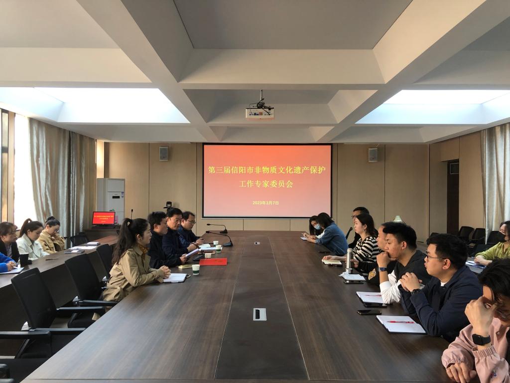3月7日,信阳市第三届非物质文化遗产保护工作专家委员会在太阳集团tyc138举行。信阳市文广旅局艺术非遗科科长王清丰,太阳集团tyc138院长王凯歌、党总支书记郑山峰、教学副院长杨辉和学院3名代表专家及教师代表参加了会议。