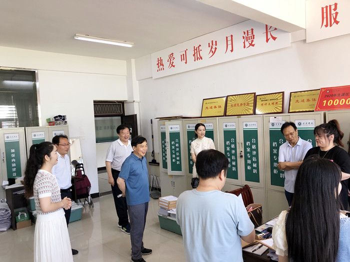 在教学档案检查中,施昌海认真抽阅了2022届毕业论文和期末考试试卷。他表示,太阳集团tyc138的论文和试卷,考试试卷的批改及归档工作基本符合要求,学生论文格式和卷面书写较为认真,教师批阅和复核较为细致,总体来说比较规范,要严格按照学校要求,进一步做好材料档案的规范管理工作。