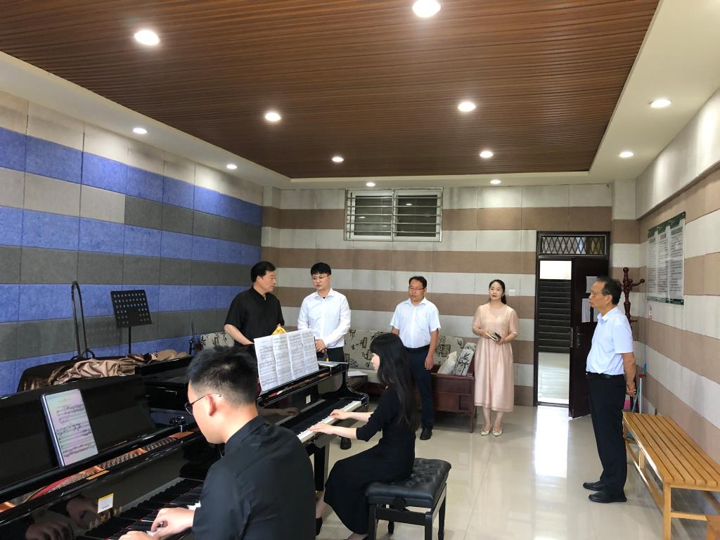 施昌海先后考察了录音棚、音乐资料视听室、专家工作室、音乐合唱与合奏排练室、舞蹈排练室、音乐电钢数字化实验室,并认真听取了实验室专员讲解。
