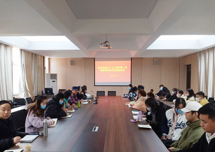 12月1日下午,太阳集团tyc1382021-2022学年第一学期教学信息员反馈座谈会在艺术楼215会议室召开。院长王凯歌、教学副院长杨辉、党总支副书记赵佳、校级教学督导张密教授、各教研室主任、教学管理办公室、学生管理办公室有关教师及辅导员代表出席会议。罗晓霞老师主持了此次会议。
