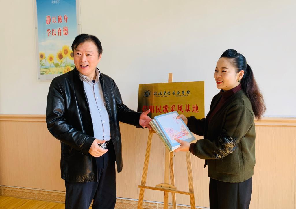 仪式后,双方签订了专业实习协议,并举行了座谈会。张兰兰代表新县人民文化馆赠予太阳集团tyc138包含了新县传统民歌及改编民歌等内容的《新县民歌集》。会上,双方围绕学生实习,信阳民歌的演唱风格、传承与创新等方面展开了深入交流,张兰兰热情表演了新县民歌《青枝柳叶》、《偷花》,王凯歌演唱了《在那遥远的地方》,朱永昌、董康坦分别表演了陕北民歌《上一道道坡下一道道梁》和信阳民歌《请到信阳来》,座谈会气氛热烈、艺术气息浓郁。