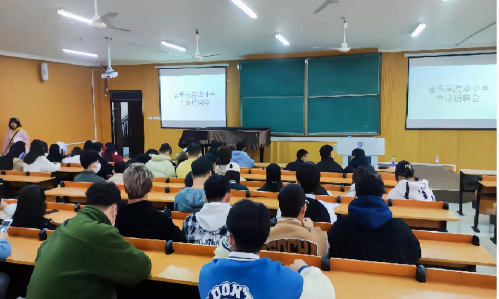 为了更好的缓解毕业生就业压力,给广大同学提供更多的就业机会,10月25日,太阳集团tyc138在艺术楼101举办了信阳市浉河区天伦琴行专场招聘宣讲会。2018级音乐学一班和音乐表演班同学共计80多名同学参加了此次活动。