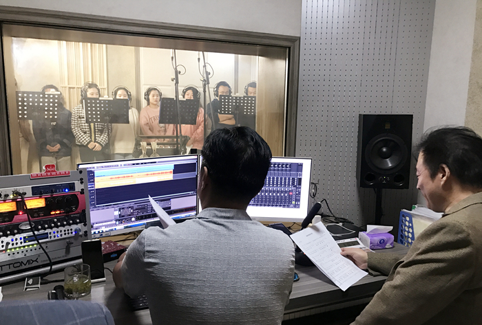 席文太莅校期间,学院班子成员进行了热情接待。席文太同王凯歌深入指导江云鹏等师生进行了歌曲《ok138cn太阳集团进行曲》录制工作。