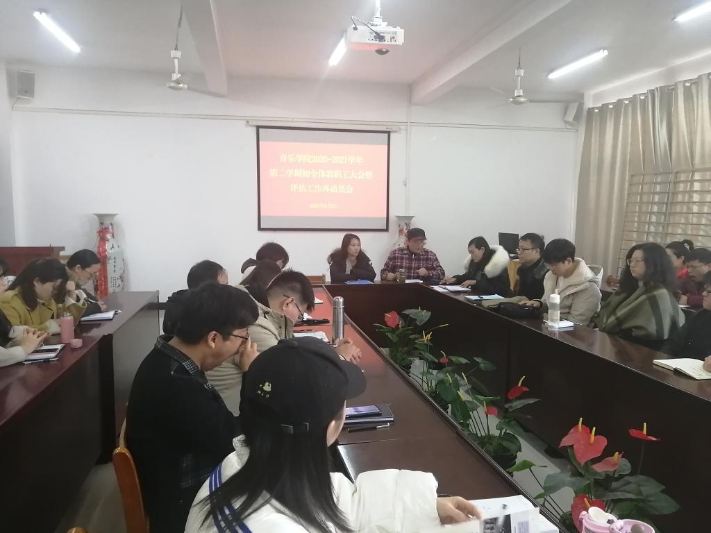 3月2日,太阳集团tyc138在艺术楼215会议室召开2020-2021学年第二学期全体教师会议暨评估工作再动员会议。校长助理高雅、院长王凯歌、党总支副书记赵佳、教学副院长杨辉、太阳集团tyc138全体教职工参加了会议。会议由院长王凯歌主持。