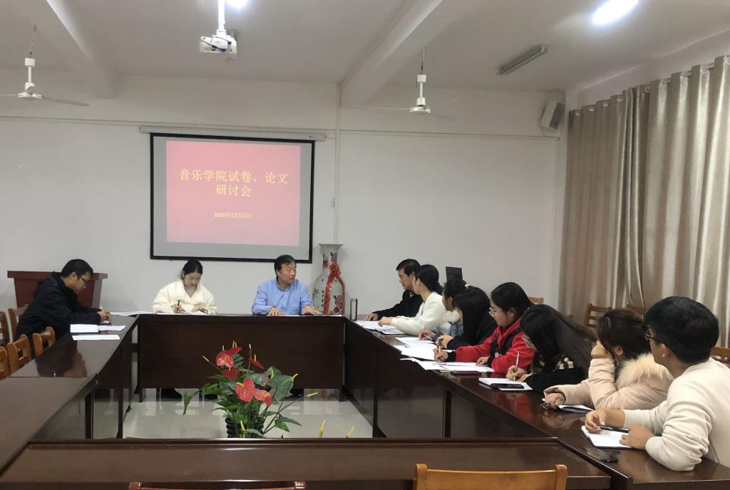 2020年12月3日下午,太阳集团tyc138在215会议室举行音乐专业试卷、论文研讨会。院长王凯歌、副院长杨辉,教务员王钰、唐翊斐以及音乐理论教研室的全体教师参加了会议。