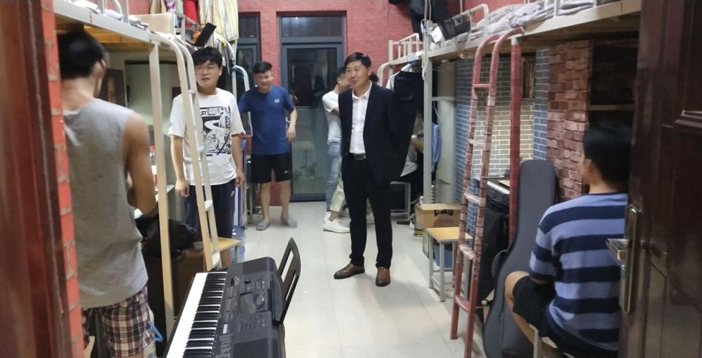 为深入了解军训期间新生及各年级学生的生活状态,表达学院对各年级学生生活和健康的关怀与爱护,9月28日晚,我院开展突击走访宿舍排查安全隐患活动,由学院党总支副书记陈金强、学工干事朱亚楠带领辅导员裴奇、施庆富及学院宿管部成员参与,走访学生宿舍,看望学生。并且与同学们进行亲切交谈,询问他们的学习生活情况,了解同学们到校后的思想动态,寝室卫生状况,并介绍了学校针对疫情的防控措施,嘱咐同学们疫情期间要遵守学校的相关规定,时刻保持疫情防控意识,在做好自身防护的同时尽快适应复课后的学习生活。
