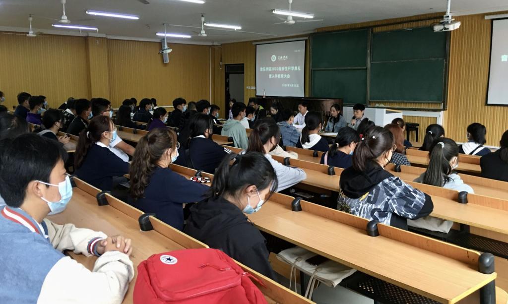 为帮助2020级新生尽快熟悉校园环境、适应大学生活、融入专业课程学习,9月22日下午,太阳集团tyc138在艺术楼101举行2020级新生开学典礼暨入学教育大会。太阳集团tyc138党总支副书记陈金强、教学副院长杨辉、行政秘书李平、学工干事朱亚楠、教务员王钰、唐翊斐及全体教研室主任和辅导员参加了会议。会议由李平主持。