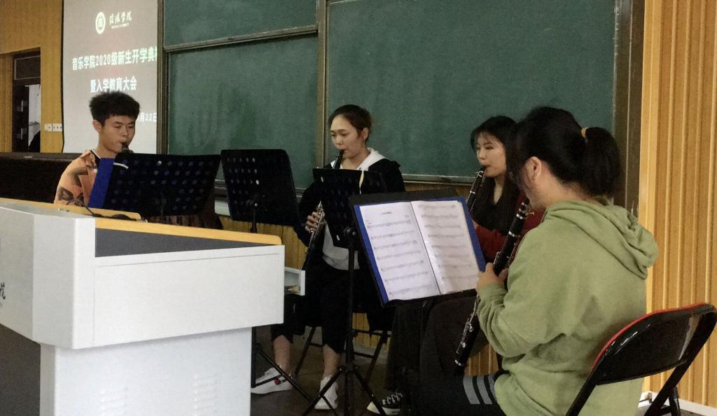 最后,钢琴与器乐教研室主任胡世红就音乐学、音乐表演进行专业思想教育,详细介绍了两个专业情况,现场还邀请部分高年级同学进行展示,让2020级新生亲身感受专业学习特点,这种专业思想教育受到广大新生一致好评。