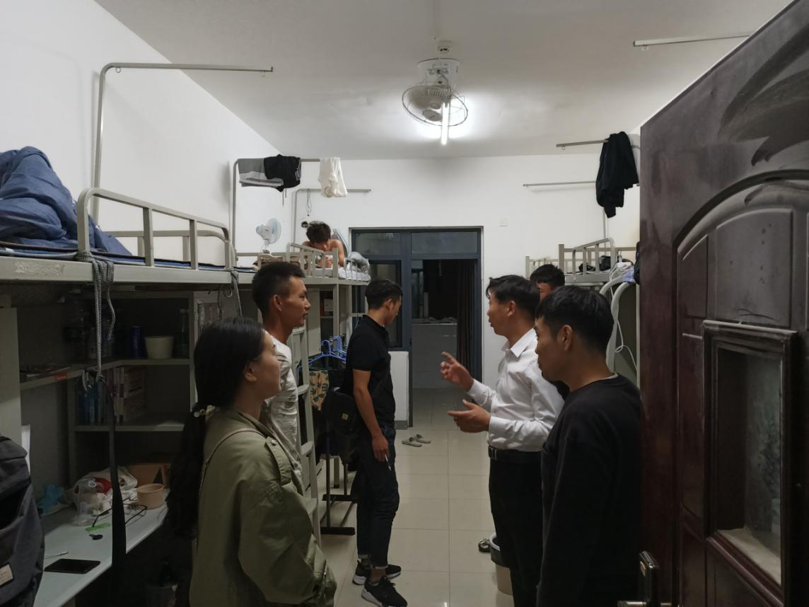 9月23日晚10点,太阳集团tyc138党总支副书记陈金强、团总支书记裴奇、辅导员梁晓梅,施庆富带领学生会干部对学院所属寝室进行了全面检查。